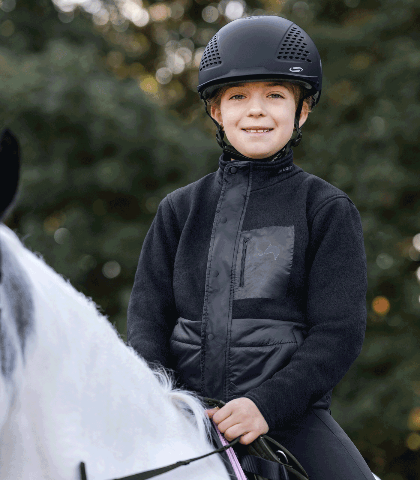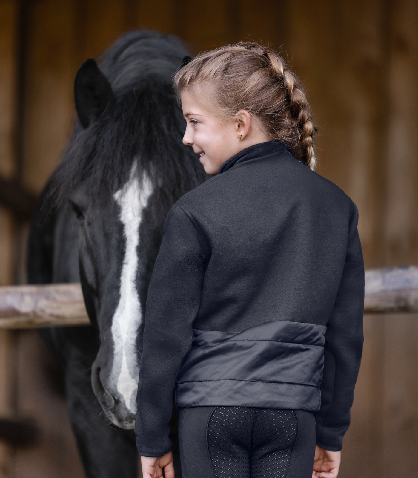 - Cosy, soft fleece material in the upper front section, upper back section, collar and sleeves