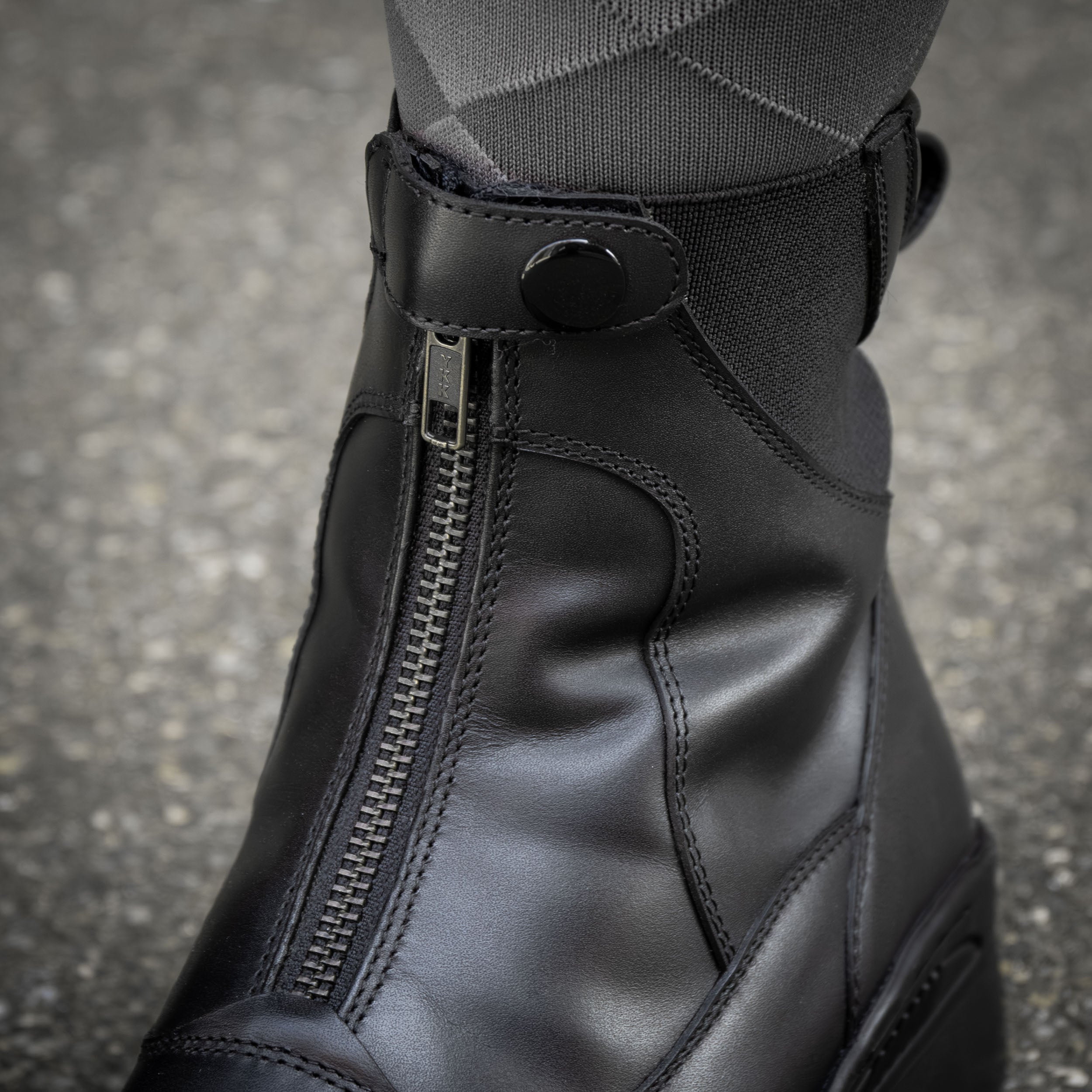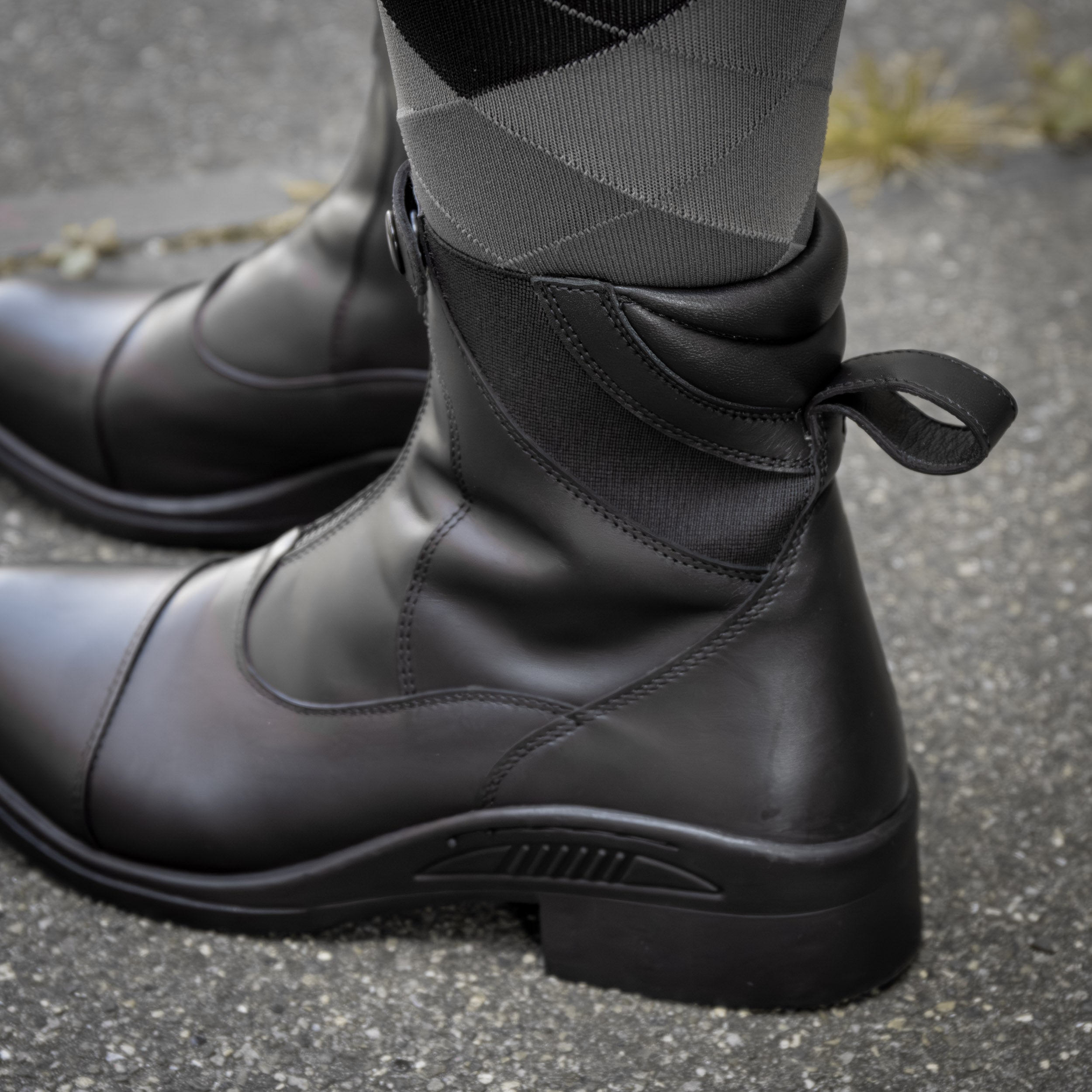 Gemaakt van stevig leder en gevoerd met zacht imitatiebont voor extra warmte. Uitgerust met een sterke YKK-rits met stopper voor een gemakkelijke instap. Elastische inzetstukken aan de zijkanten zorgen voor meer bewegingsvrijheid tijdens het rijden of wandelen. Voorzien van een aantreklus aan de achterkant voor extra gebruiksgemak.