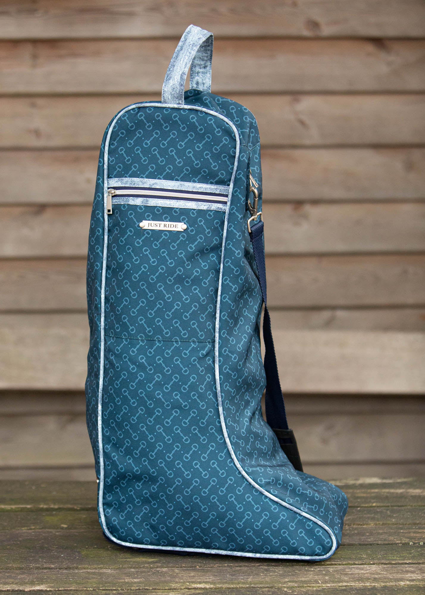 Laarzentas met een leuke allover print, een zakje met ritssluiting aan de rechterkant, handvat en een lange verstelbare en afneembare schouderband.