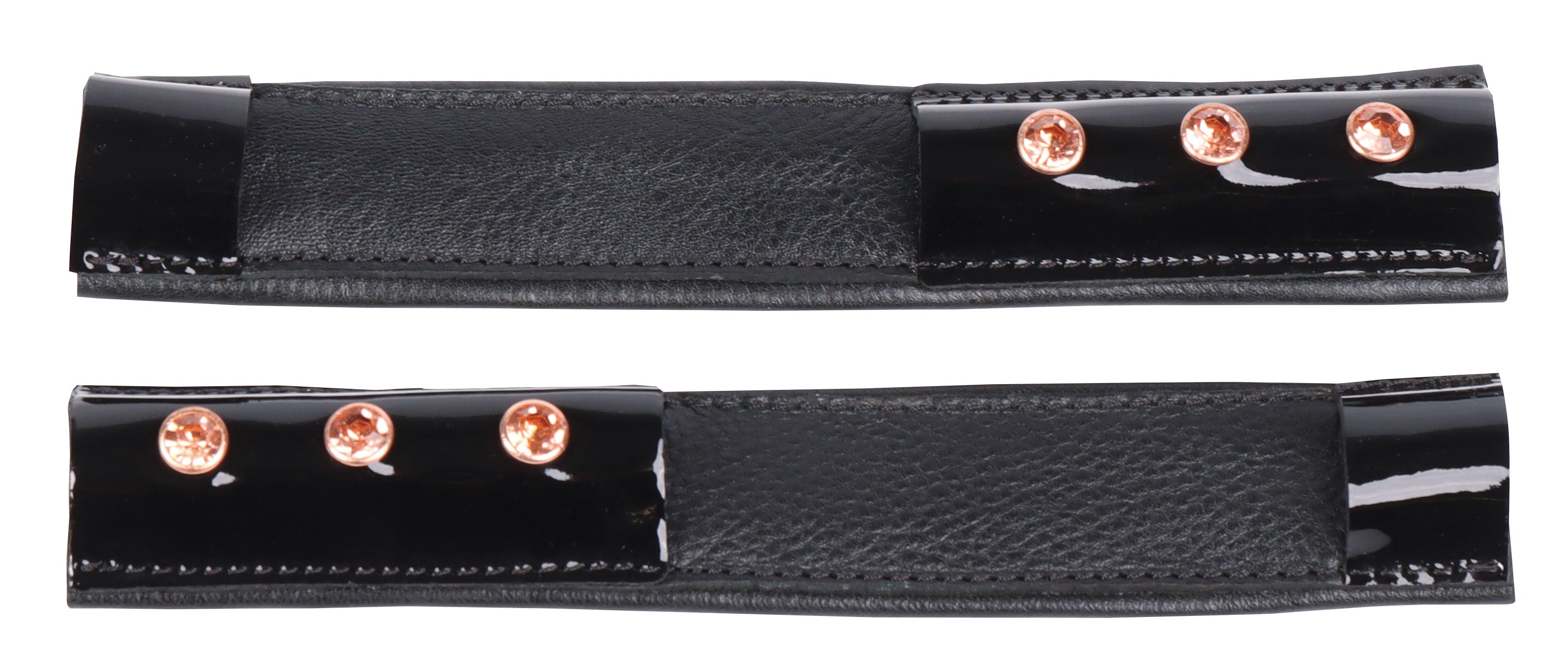 Uitgevoerd in lakleder met chique rosegold kristallen.