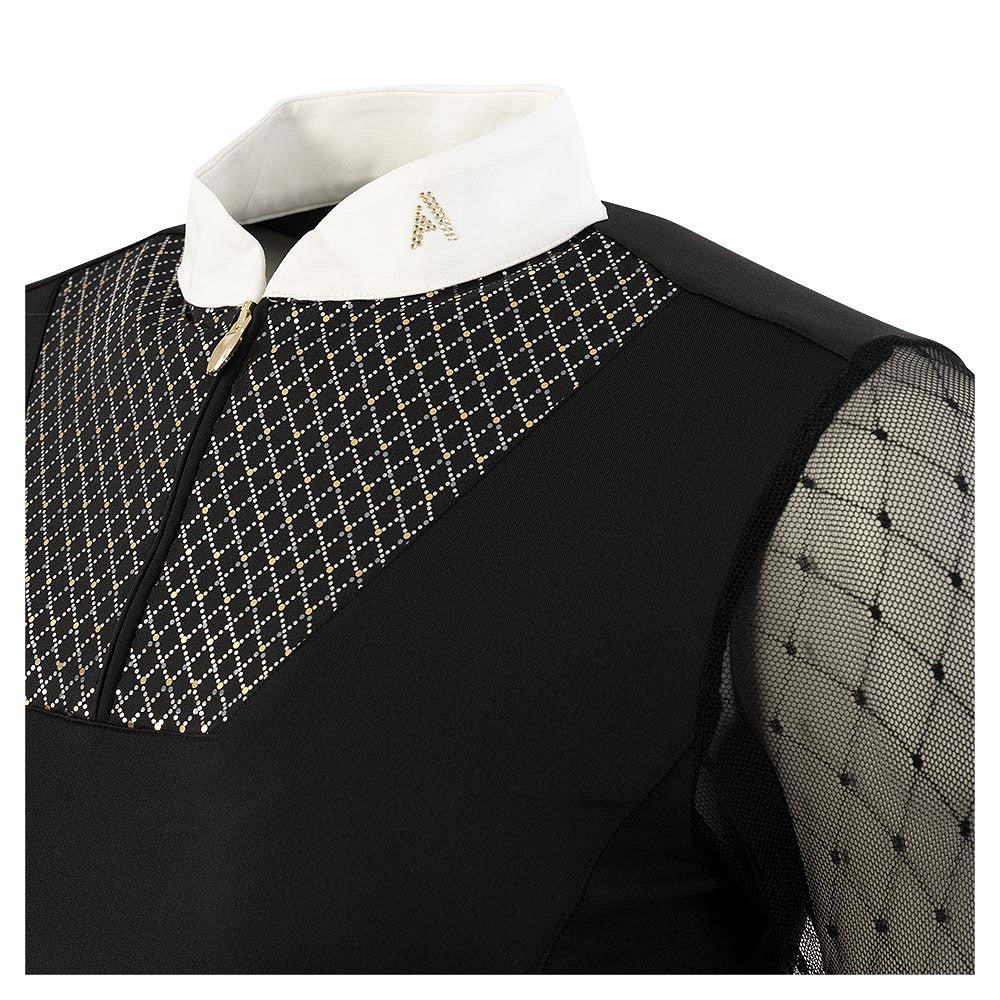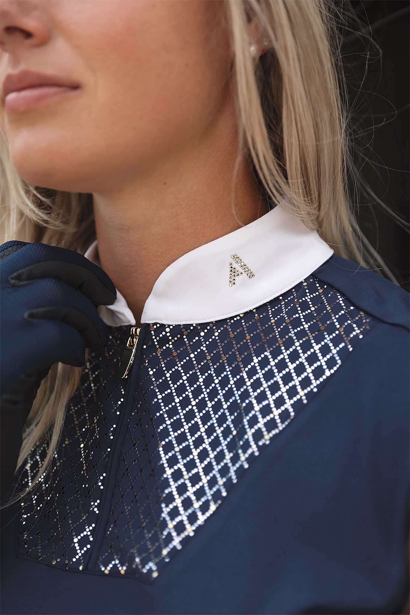 Het wedstrijdshirt Prospect is gemaakt van een zachte, sportieve stof die ademend, vochtregulerend en sneldrogend is zodat het shirt lekker lang fris blijft. Het mesh inzetstuk en de meshmouwen zien er niet alleen stijlvol uit, maar zorgen ook nog eens voor extra ventilatie. Glitterdetails op de opstaande kraag, borst en mouwuiteinden maken dit shirt helemaal af.