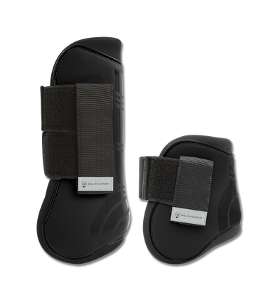 Impact-proof hard shell with shock-absorbing padding and soft zones for a comfortable and safe protection of the horse"s legs. High quality elastic with touch tape fasteners and securing strap ensure perfect fit and a secure hold - even in extreme situations. Set