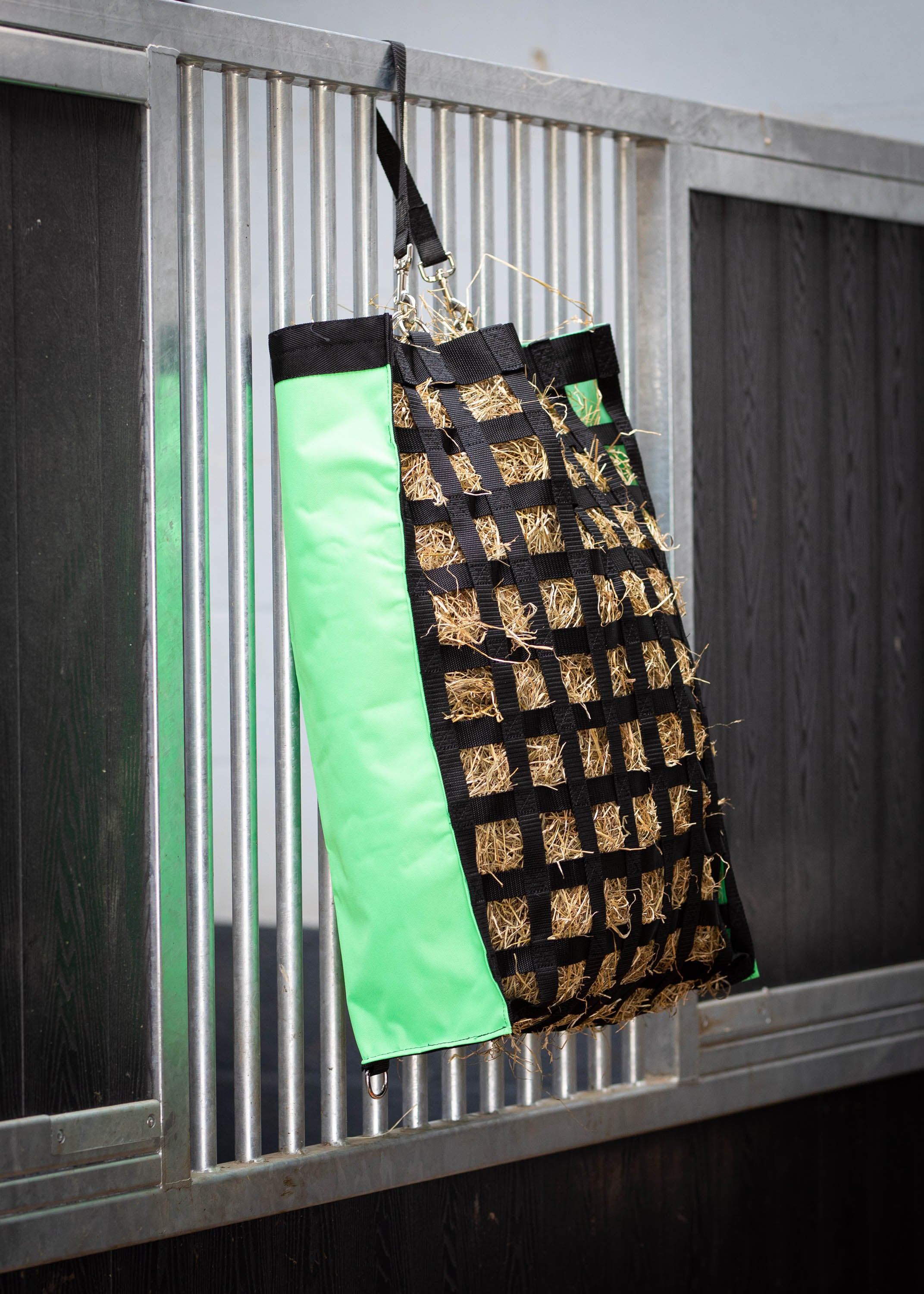 De sterke 600D nylon hooitas Adagio is een zogenaamde "slow feeder". Door het fijne maassysteem (5CM*5CM) wordt de snelheid van de ruwvoeropname vertraagd en de fourage-tijd verlengd.