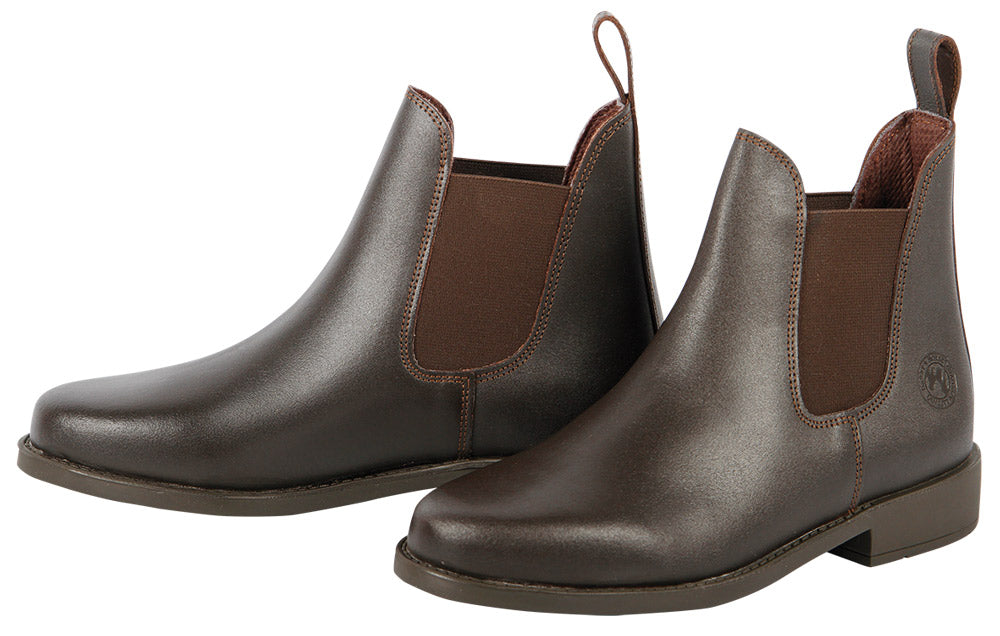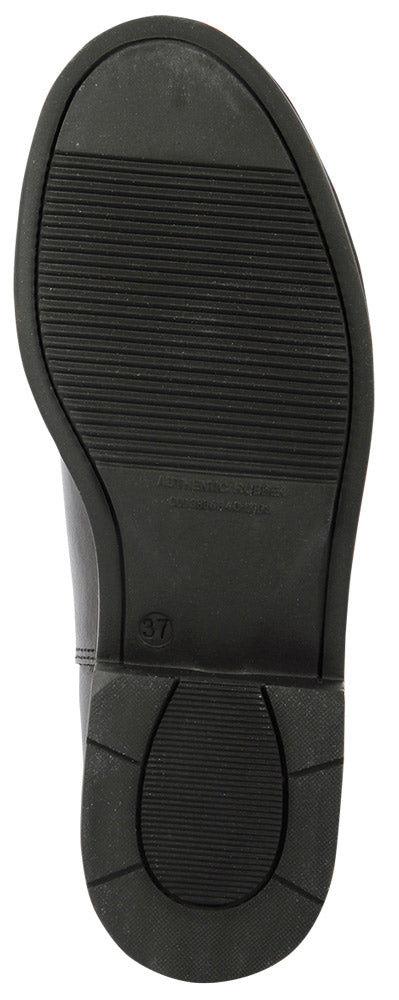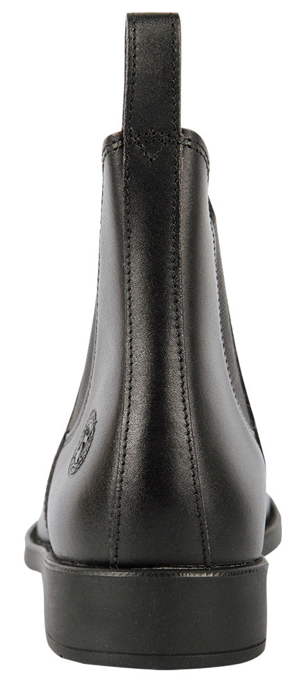 Lederen jodphur, gevoerd en met een vlakke rubberen ribbelzool.Voorzien van zeer comfortabele neopreen binnenzool welke zorgt voor schokabsorbatie en voorkomt wrijving.