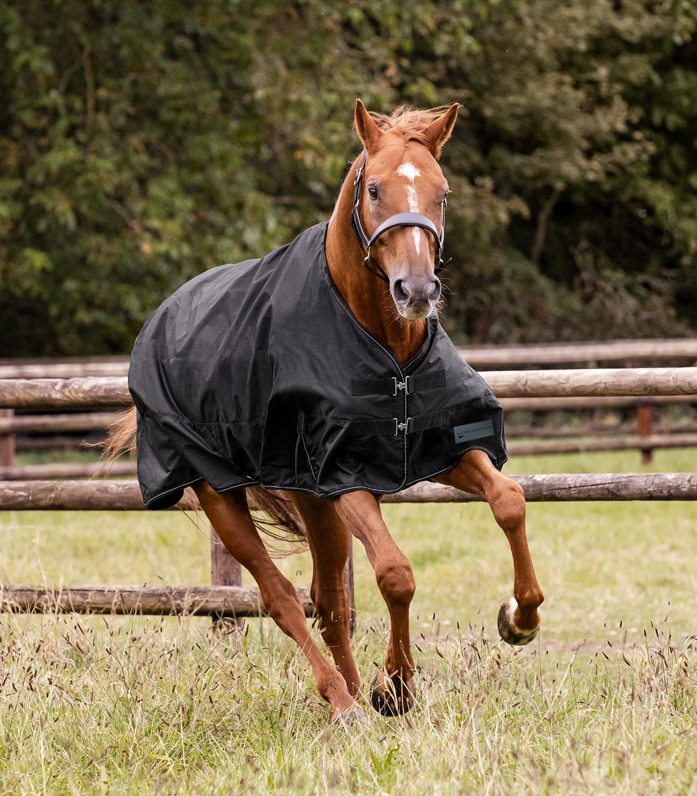 Met de Waldhausen Nordic buitendeken biedt u uw paard optimaal comfort op koele dagen. De dubbele T-sluitingen zorgen voor een goede pasvorm. De randband met reflecterende details verhoogt de zichtbaarheid bij weinig licht. Het geplooide ontwerp zorgt voor bewegingsvrijheid. De 600 denier buitenstof is slijtvast en houdt uw paard warm en droog.