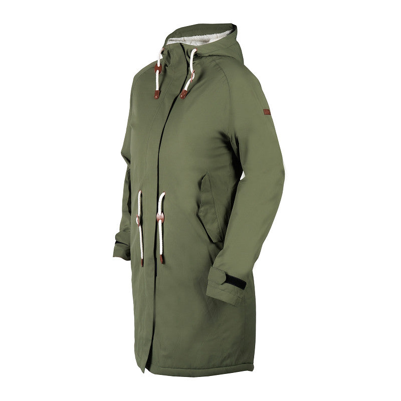 Praktische en modieuze regenparka van hoogwaardige materialen uitermate geschikt voor outdoor activiteiten. Volledig waterdicht en gevoerd met warme teddyvoering in body en capuchon. Productspecificaties: Volledig waterdicht en ademend met getapete naden en capuchon (niet afneembaar) Warme teddyvoering in de body en capuchon : Lange rits met dubbele sluiting aan de voorkant twee voorzakken met drukknoop één binnenzak : Aantrekkoorden in taille en capuchon Uitermate geschikt voor allerlei outdoor activiteiten Materiaal: : Buitenstof: 100% Polyester full dull pongee met ripstop en extra TPU laag. Waterdicht/ademend 8000/3000. : Binnenstof: 100 % Polyester en 100% Polyester Teddy. :