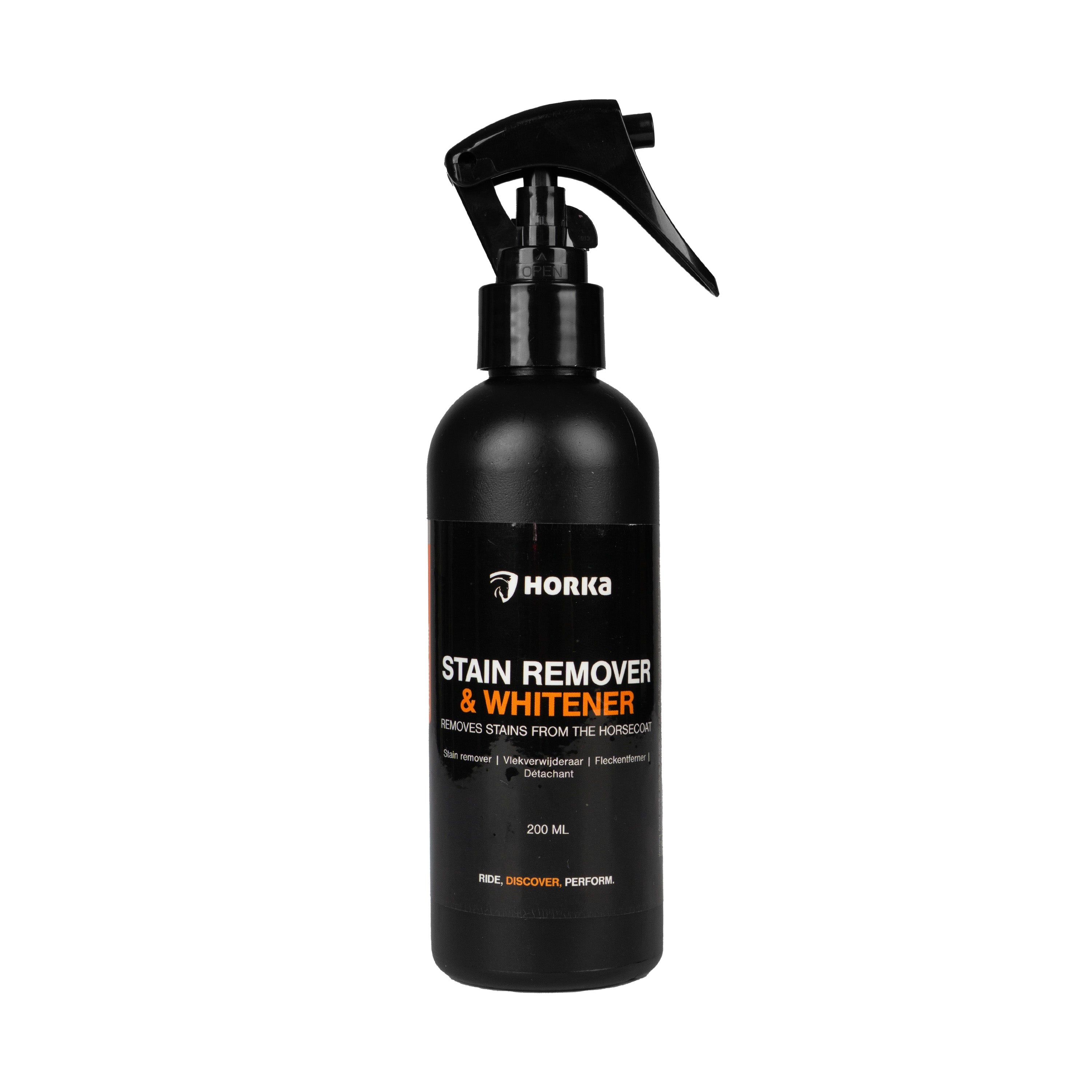 Effectieve vlekverwijderaar voor de vacht of witte aftekeningen van het paard. Gebruiksaanwijzing:< Spray direct op de vacht of de vlek Spoel uit na ongeveer 5 minuten.