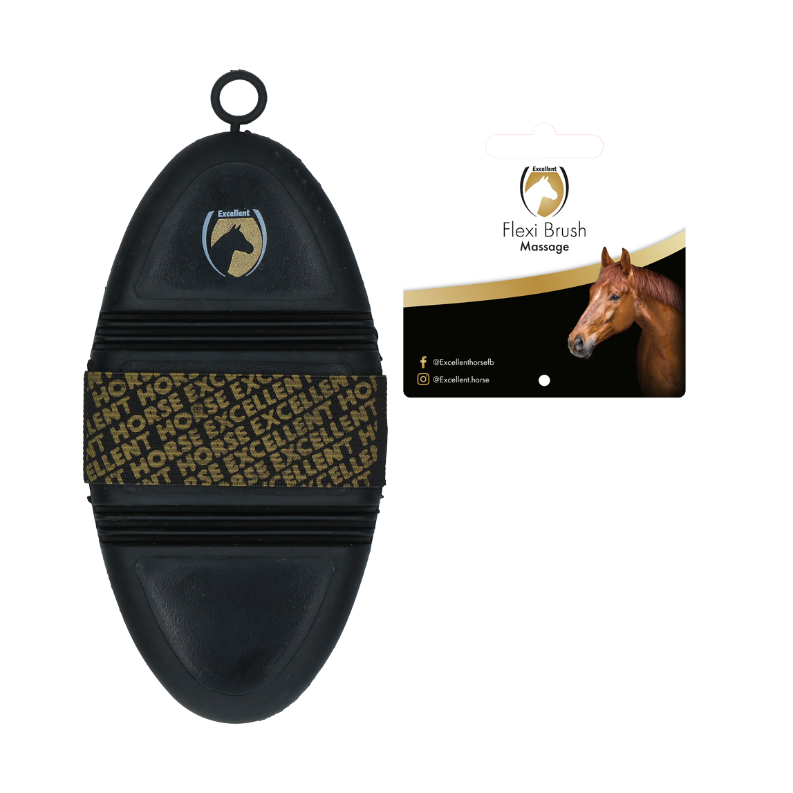 Deze borstel met noppen masseert de huid, stimuleert de bloedsomloop en verwijdert losse haren, vuil en stof. Door de flexibele bovenzijde ligt de borstel comfortabel in de hand en vormt deze zich eenvoudig naar het lichaam van het paard.