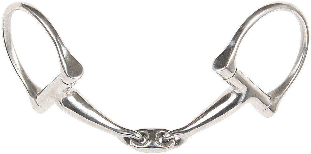 Een D-trens ligt rustig in de mond van het paard, zorgt voor extra zijdelingse steun en de vorm van de D-ringen voorkomt dat het bit door de mond getrokken kan worden.