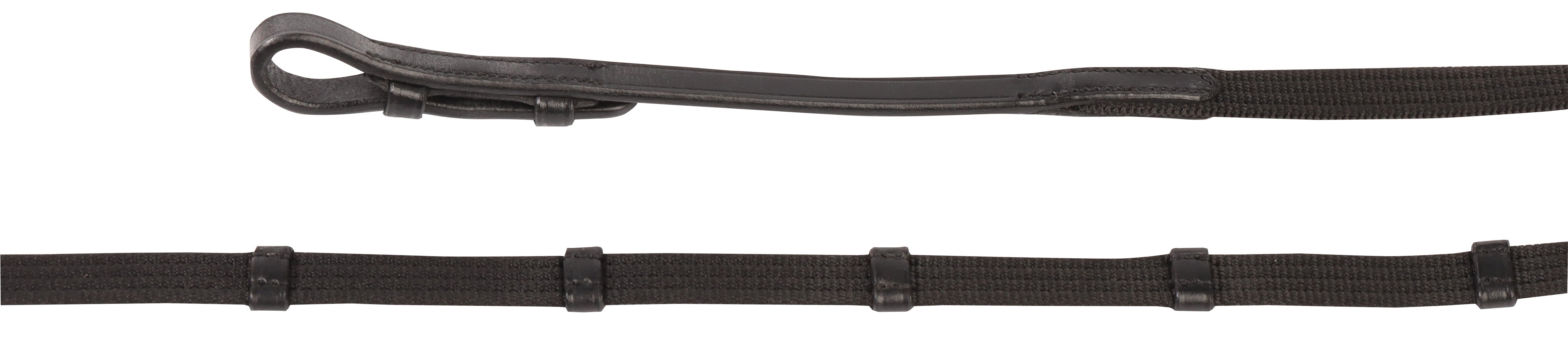 Lederen hoofdstel met verschillende kleuren kristallen in de frontriem, neusriem voorzien van een gekleurde piping en een zachte padding, blinde sluiting aan de bakstukken en teugels. Inclusief webbandteugels met stops.