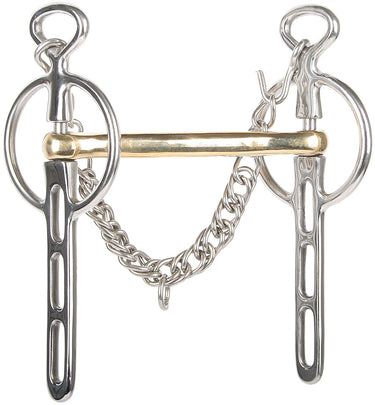 RVS Liverspool stang met recht mondstuk van Goldbrass, losse scharen met 3 slots en pompwerking, inclusief kinketting.