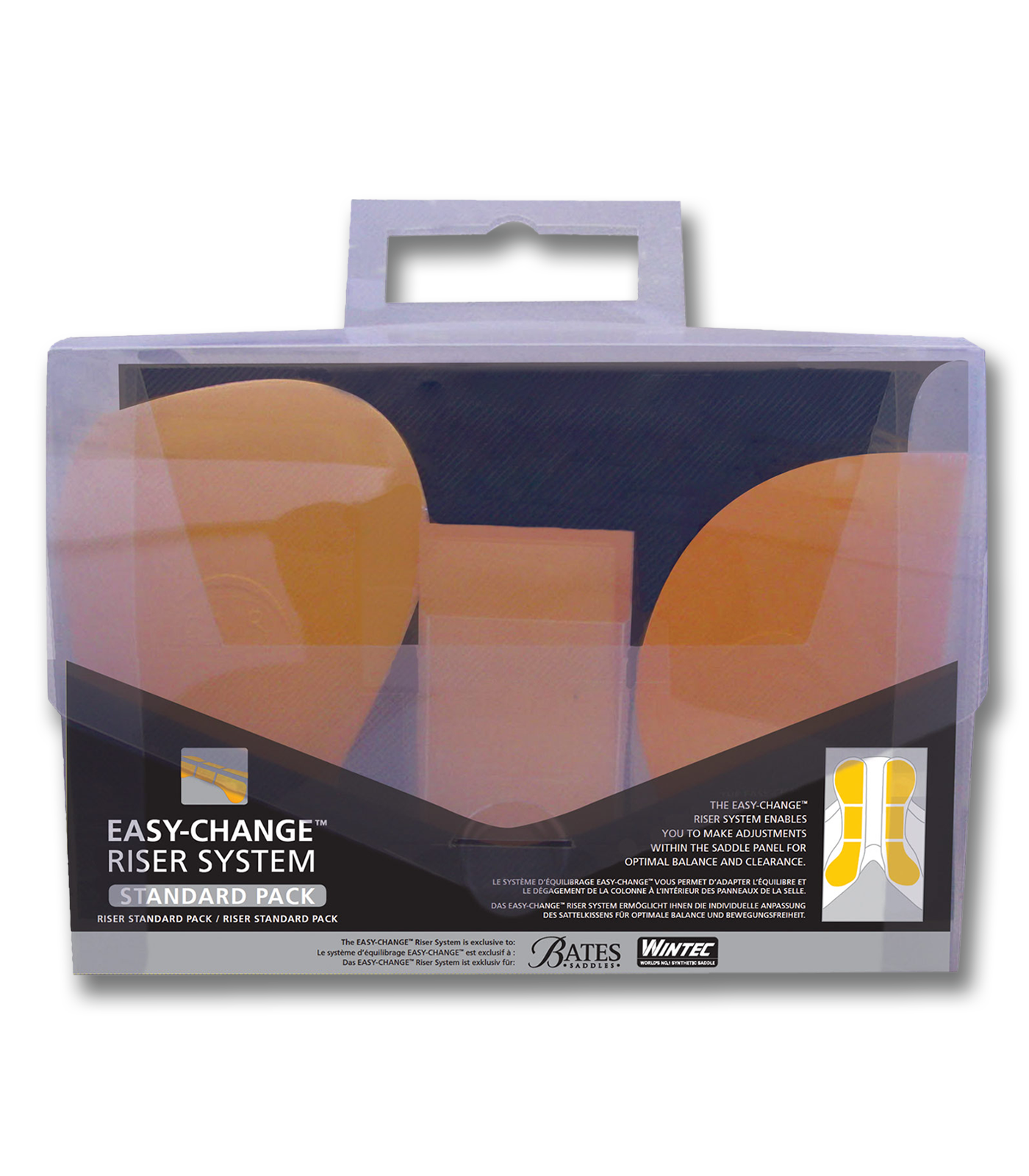 risers (4mm, 8mm, 12mm, 16mm), centre risers (4mm, 8mm), rear risers (4mm, 8mm, 12mm, 16mm), an instruction booklet, EASY-CHANGE locating tool.