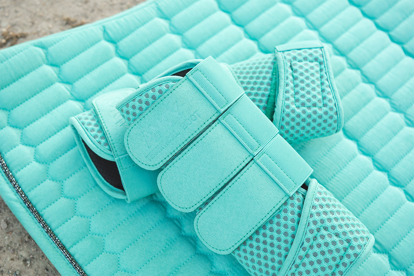 - Geperforeerde neopreen voering houdt het been van het paard koel en droog