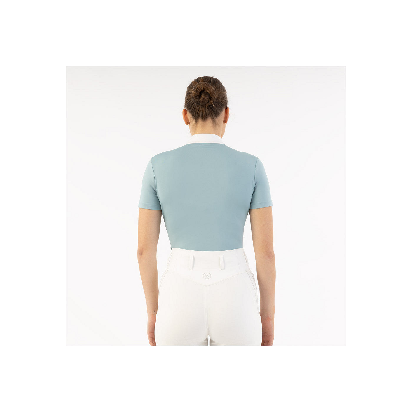 • Opstaande kraag met blinde schouderrits met drukknoopsluiting bij kraag