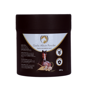 Knoflookpoeder voor paarden ter ondersteuning van de vertering, stofwisseling en algehele weerstand. Garlic Allicin Powder EU is een 100% natuurlijke Europese knoflook in poedervorm met de unieke eigenschap dat de werking zowel inwendig als uitwendig is!