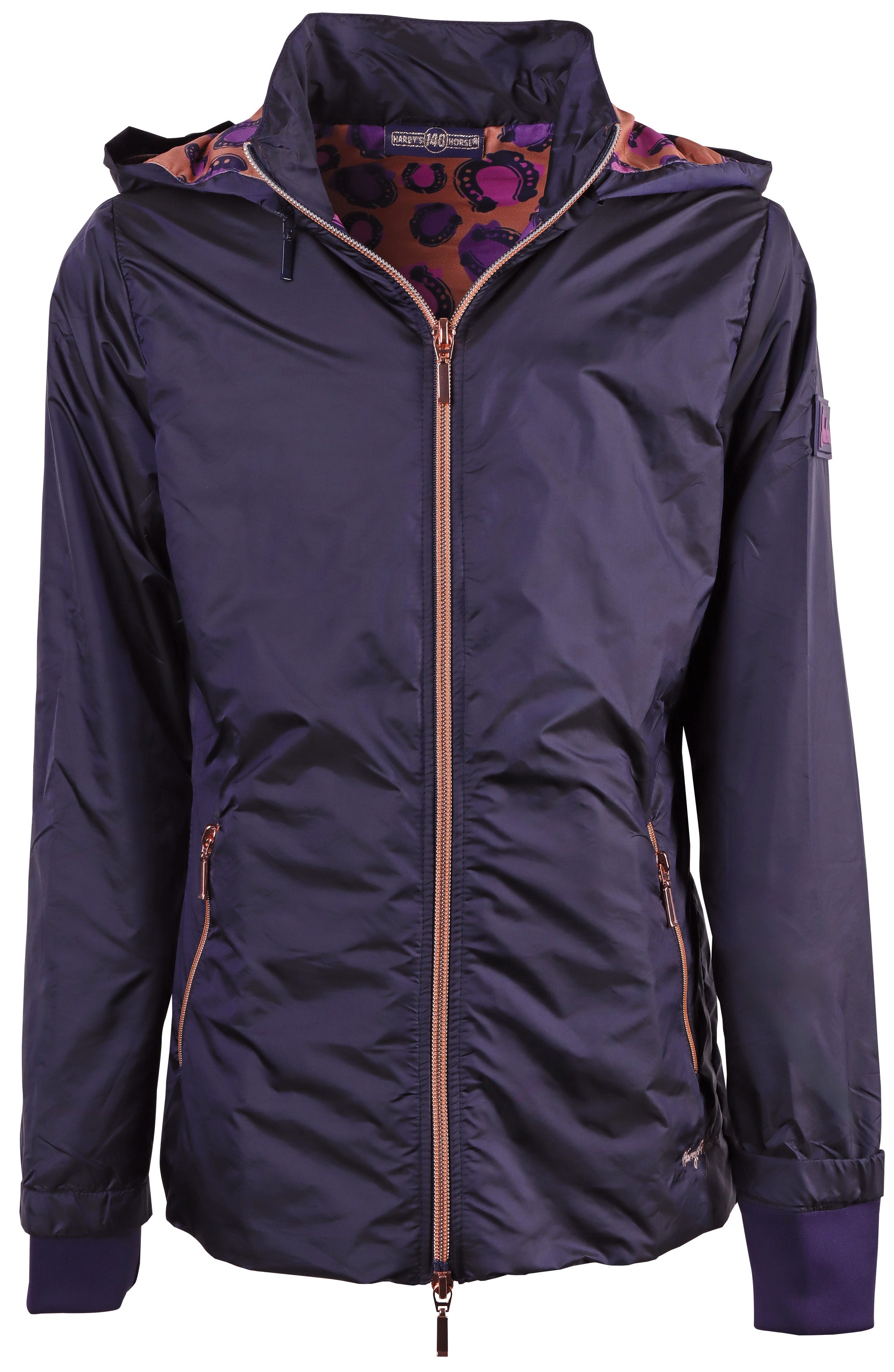 Jas met een tweeweg ritssluiting, twee zakken met ritssluiting, afneembare capuchon, LouLou logo op een rubber badge op de linkermouw, een allover hoefijzer print op de voering en met een windblokker bij de mouwen.