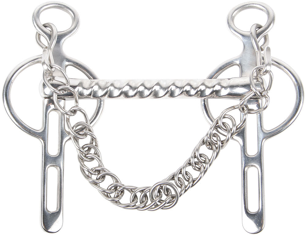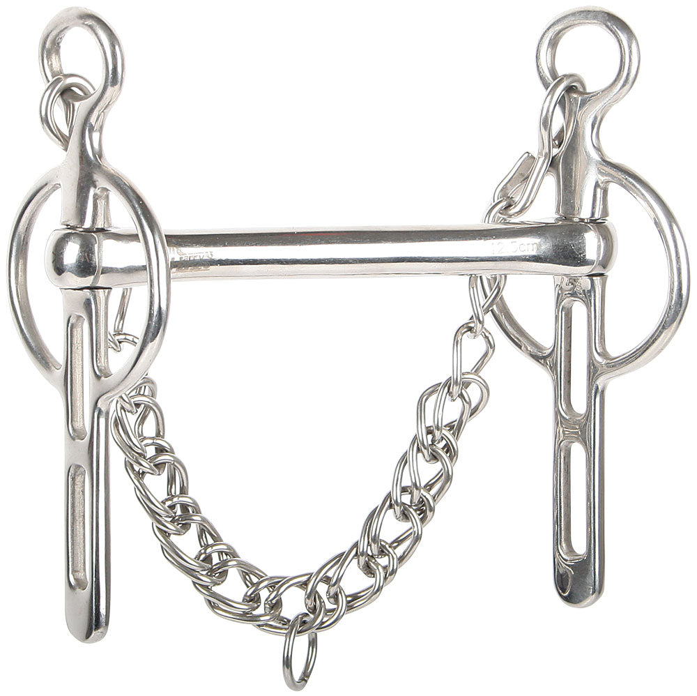 RVS Liverspool stang met recht mondstuk en losse scharen, 2 slots, inclusief kinketting.