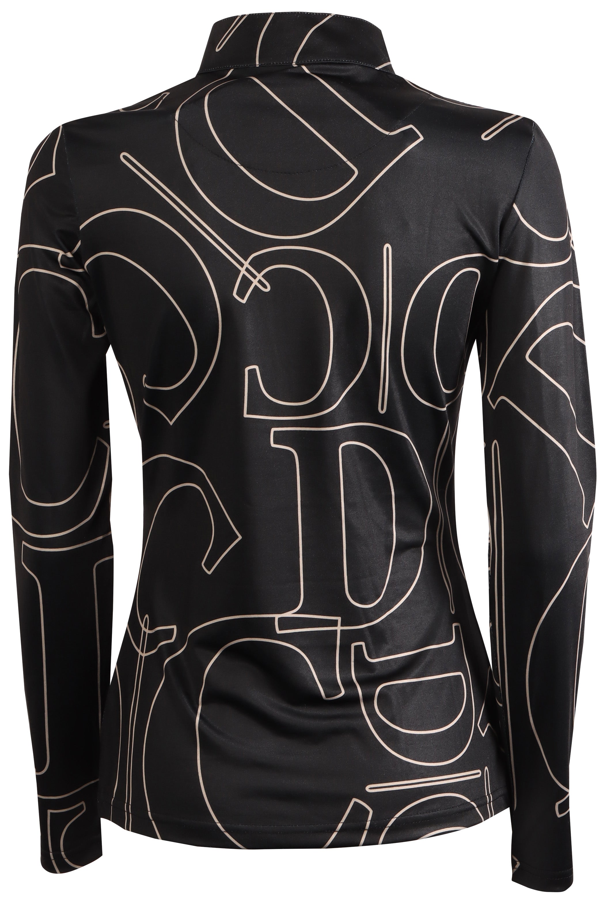 Shirt met lange mouw, opstaande en afgeronde kraag naar de korte rits toe. Grote Denici Cavalli allover print random geplaatst op het gehele shirt waardoor ieder shirt uniek is.