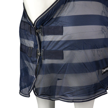 Vliegendeken met toon op toon gestreept patroon gemaakt van mesh materiaal. Productspecificaties: Dubbele verstelbare snel sluiting op de borst Fleece gevoerde schoft Kruissingels met rubber stops Afneembare en verstelbare bilkoorden Materiaal: : 100% polyester mesh 110 gsm